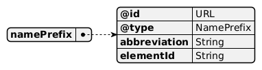{ "namePrefix" : { "@id" : "URL", "@type" : "NamePrefix", "abbreviation" : "String", "elementId" : "String" } }