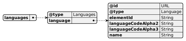 { "languages" : { "@type" : "Languages", "language" : { "@id" : "URL", "@type" : "Language", "elementId" : "String", "languageCodeAlpha2" : "String", "languageCodeAlpha3" : "String", "name" : "String" } } }